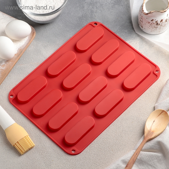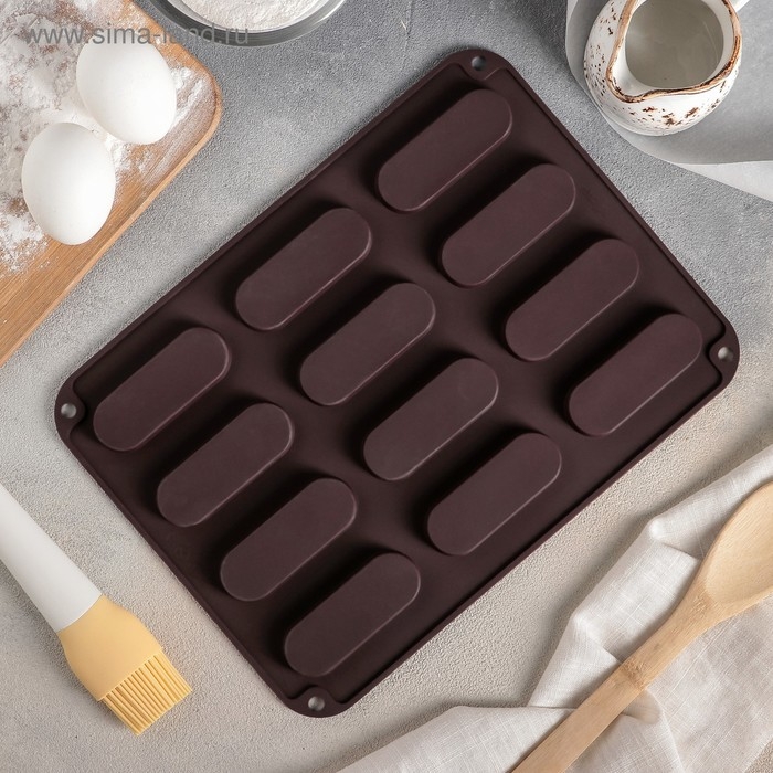 Форма для выпечки Доляна «Сладости.Эклер», силикон, 28×21×1 см, 12 ячеек (7,6×2,7×1 см), цвет МИКС