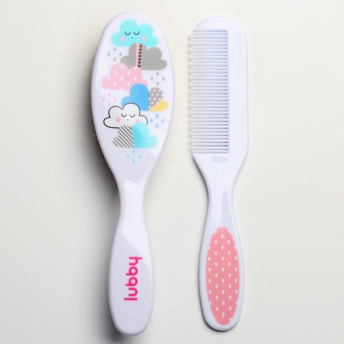 Набор расчесок с погремушкой «Малыш», 2 шт., цвет розовый, рисунок МИКС