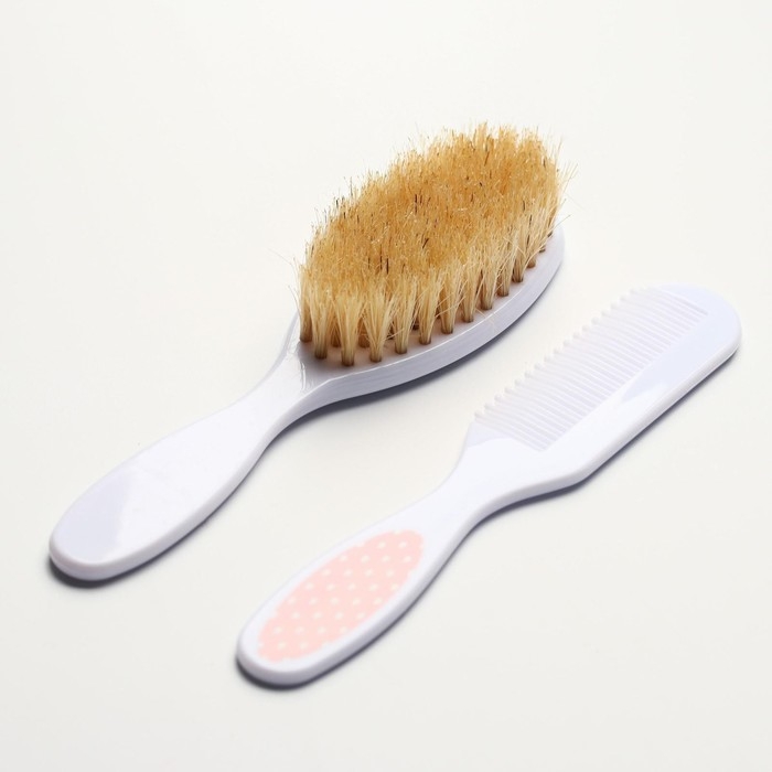Расчёска детская + массажная щётка с натуральной щетиной для волос в наборе «Малыши и малышки», от 0 мес.