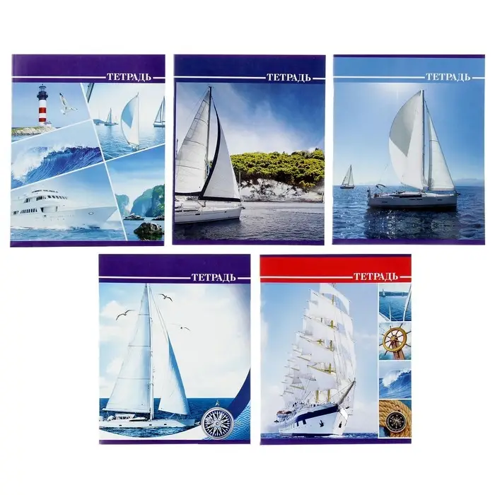 Тетрадь 36 листов в клетку, Calligrata «Яхты», обложка мелованный картон, серые листы, МИКС