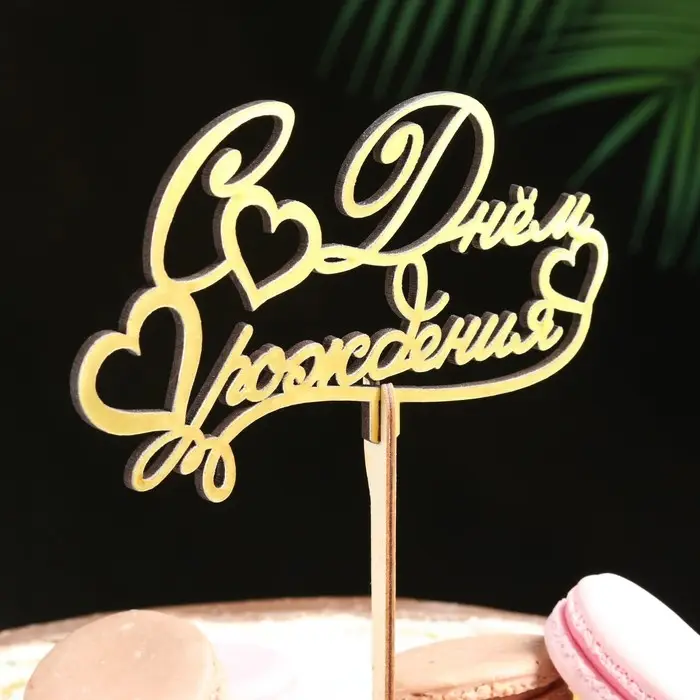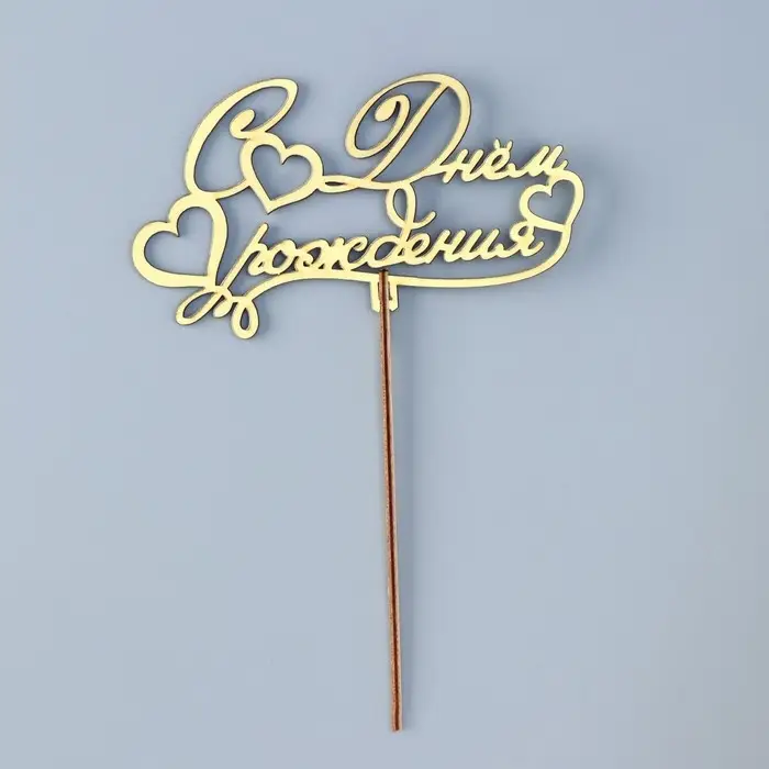 Топпер деревянный "С Днём Рождения" золотой Дарим Красиво 14,3х8,1 см