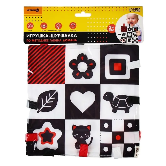 Петельки. Платочек - шуршалка по методике Г. Домана «Мои первые цвета», 20х20см, Крошка Я