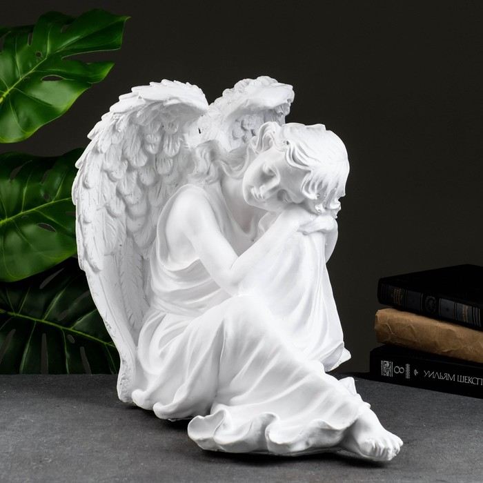 Фигурка гипс «Ангел девушка сидя», большая, белый 28×45×37 см