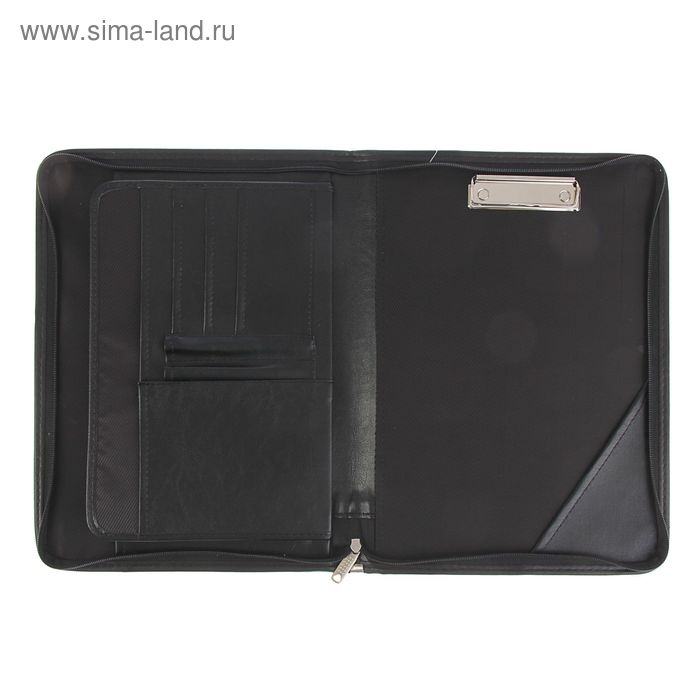 Пaпка деловая, искусственная кожа, для бумаг, 360 х 260 х 30 мм, с металлическим прижимом, 6Д07 "Люкс " чёрная