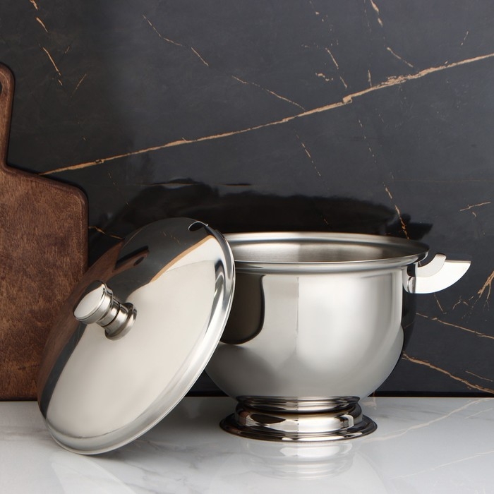 Супница из нержавеющей стали станет элегантным дополнением сервировки стола. Предмет можно использовать для хранения, разогрева и подачи жидких блюд.