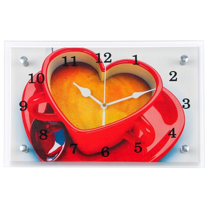 Часы-картина настенные, интерьерные "Чашка кофе сердце", бесшумные, 30 х 20 см
