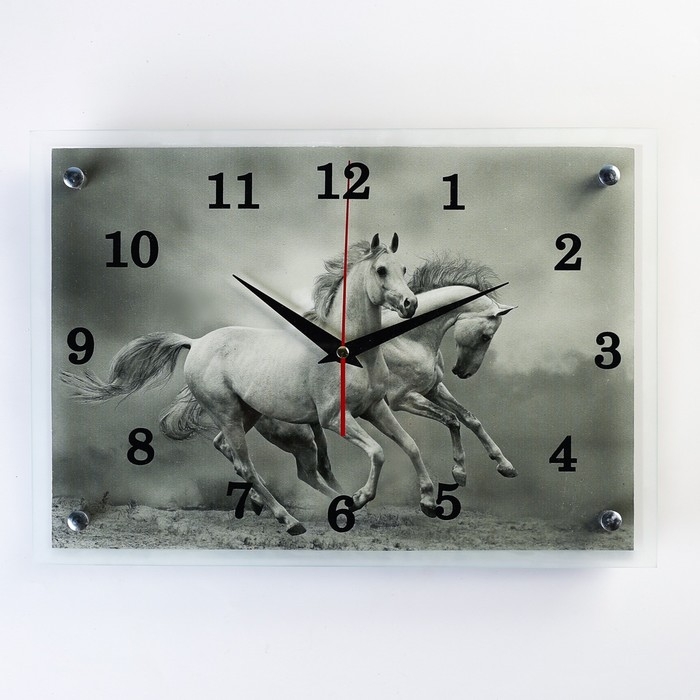Часы-картина настенные, интерьерные "Серые лошади", бесшумные, 25 х 35 см