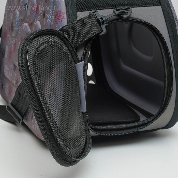Сумка - переноска для животных "Лапки Happy", чёрная, размер М, 40 х 21 х 27 см
