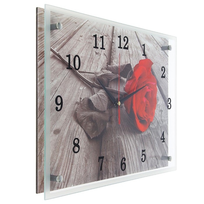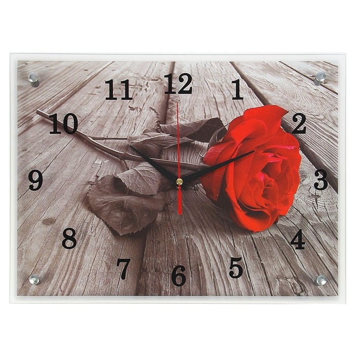 Часы-картина настенные, интерьерные "Красная роза", бесшумные, 30 х 40 см