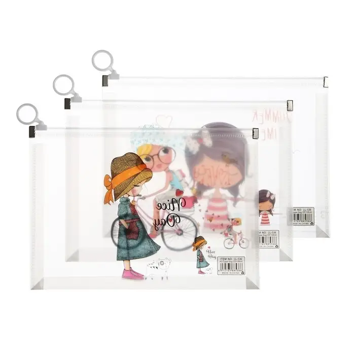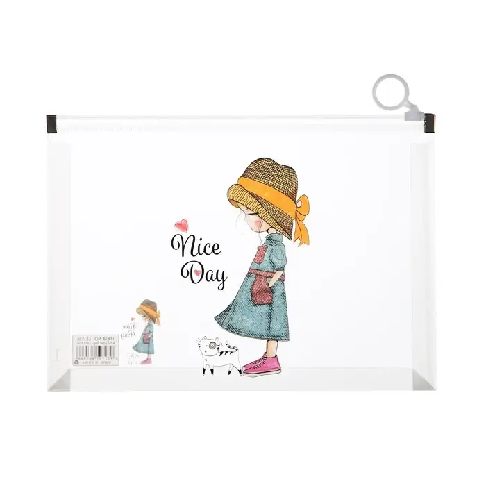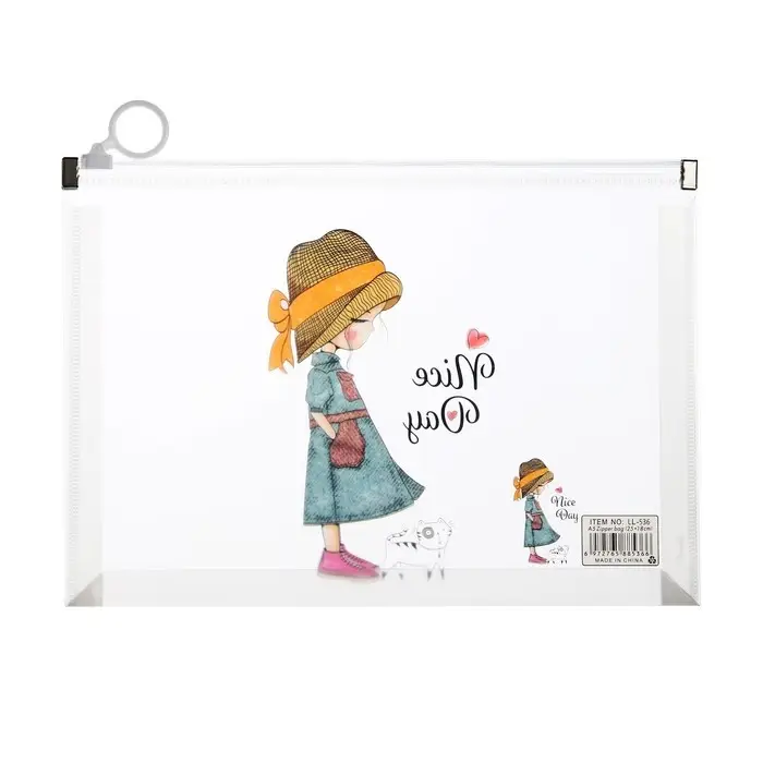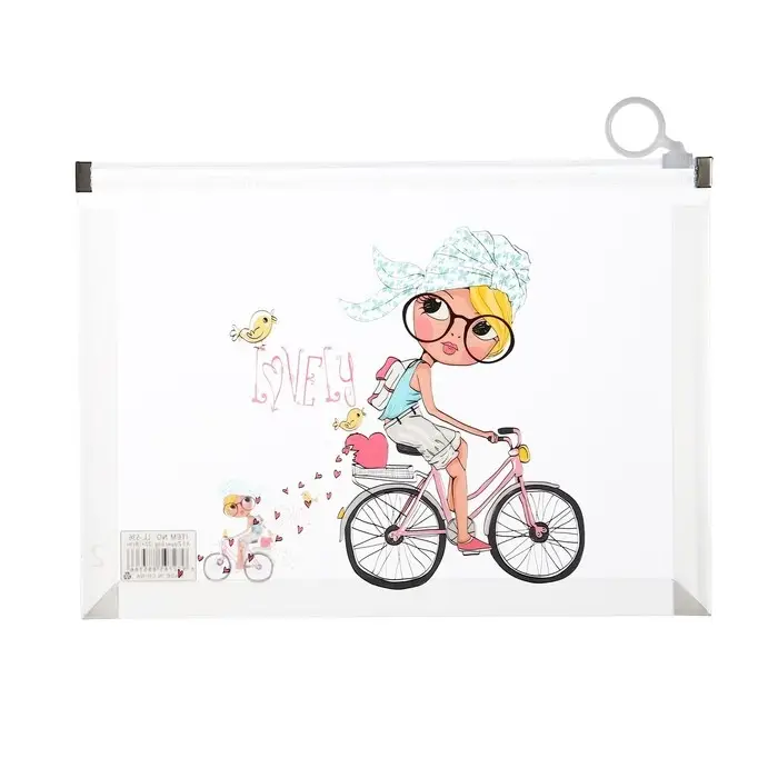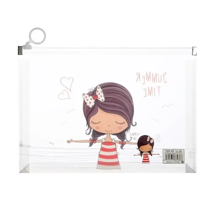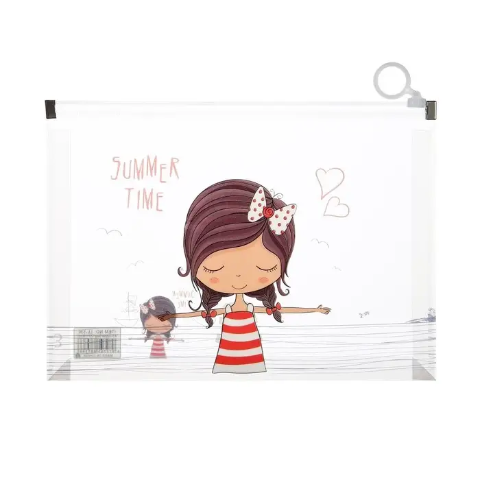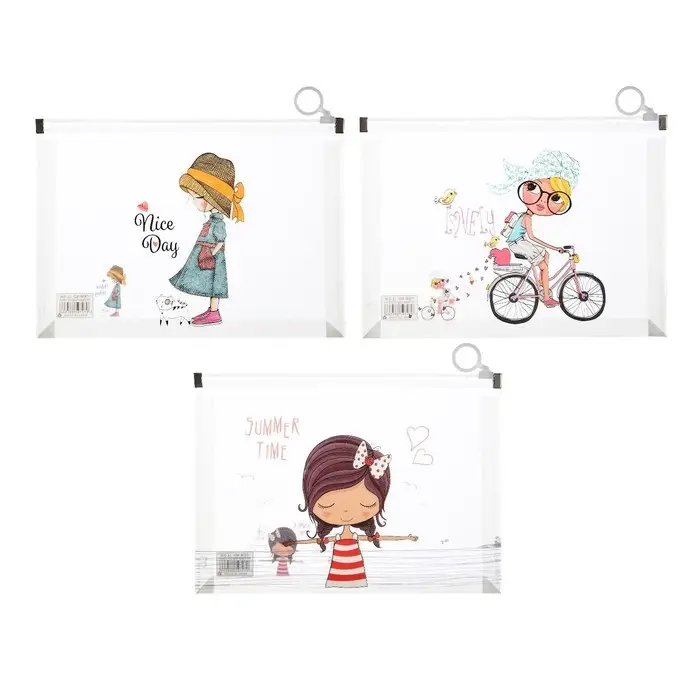 Папка-конверт на молнии формат А5, 180мкр, с рисунком "Маленькая девочка", МИКС