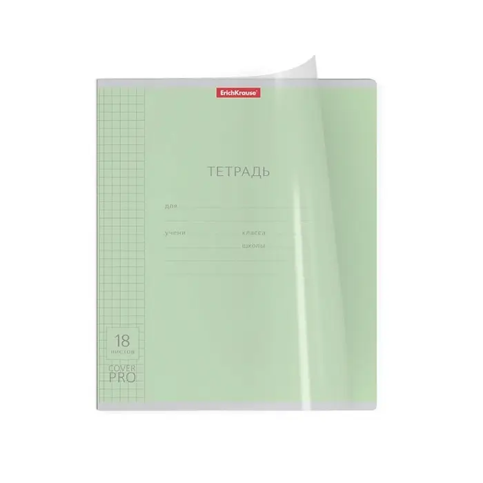 Тетрадь 18 листов в клетку, ErichKrause "Классика CoverPrо", пластиковая обложка, мелованный картон, блок офсет 100% белизна, МИКС, цена за 1 штуку