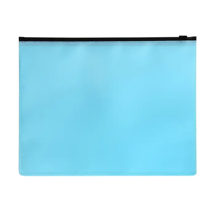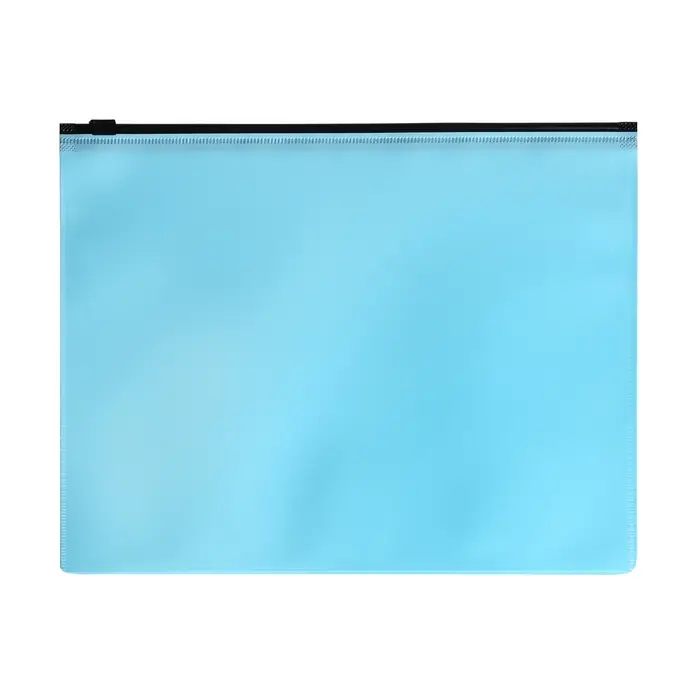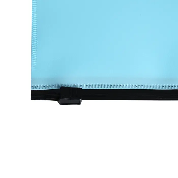 Папка-конверт на ZIP-молнии A5, 150 мкм, Calligrata Pastel, прозрачная, чёрная молния, голубая