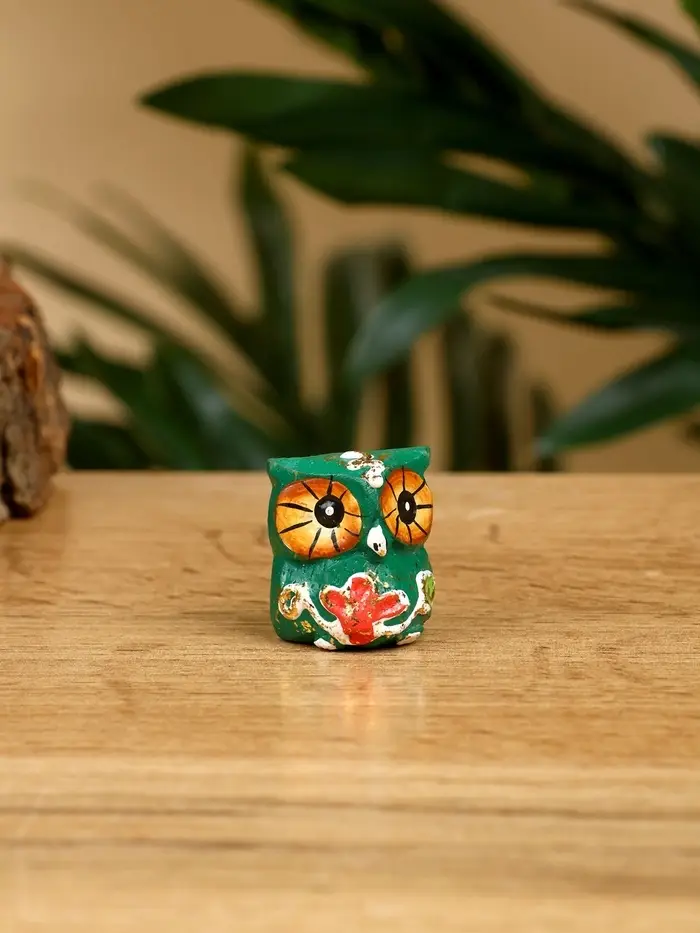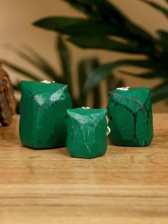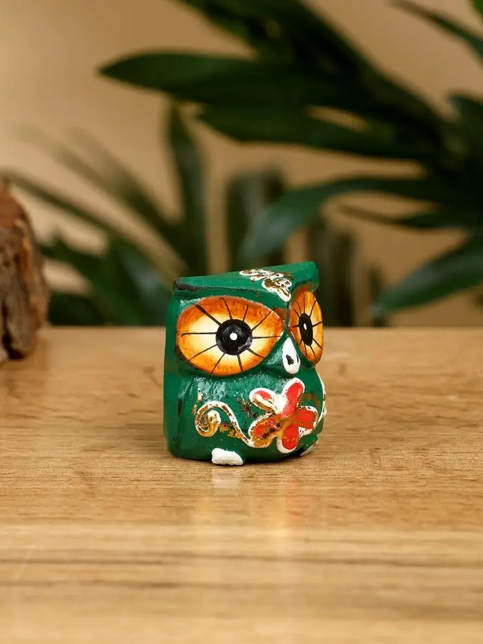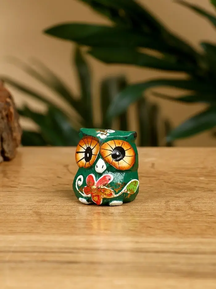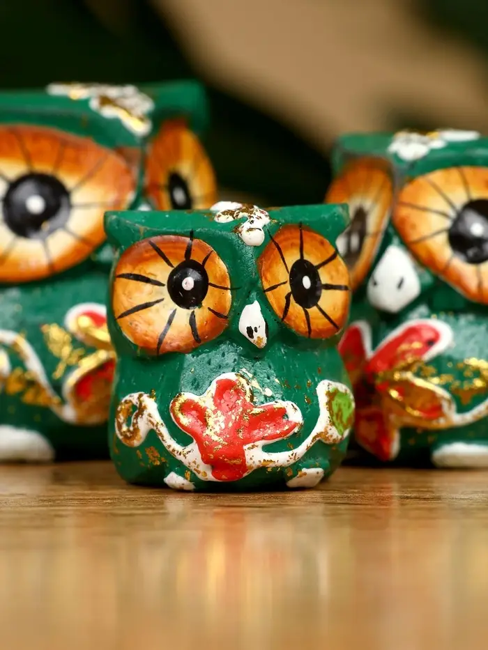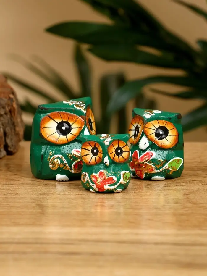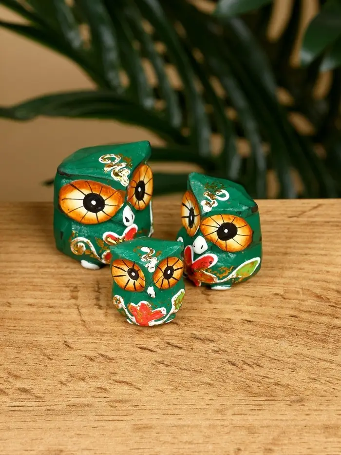 Набор сувенирный "Совята" дерево H 4, 3, 2 см, цв. зелёный