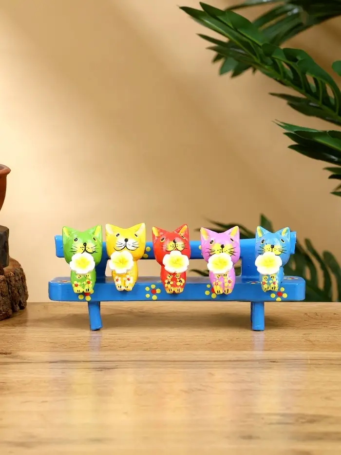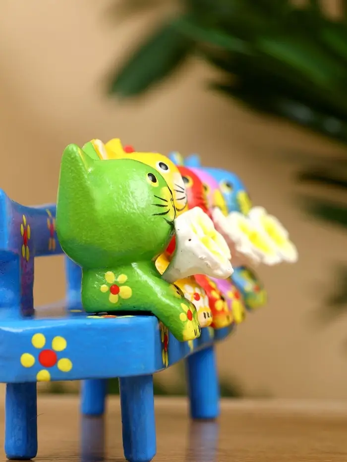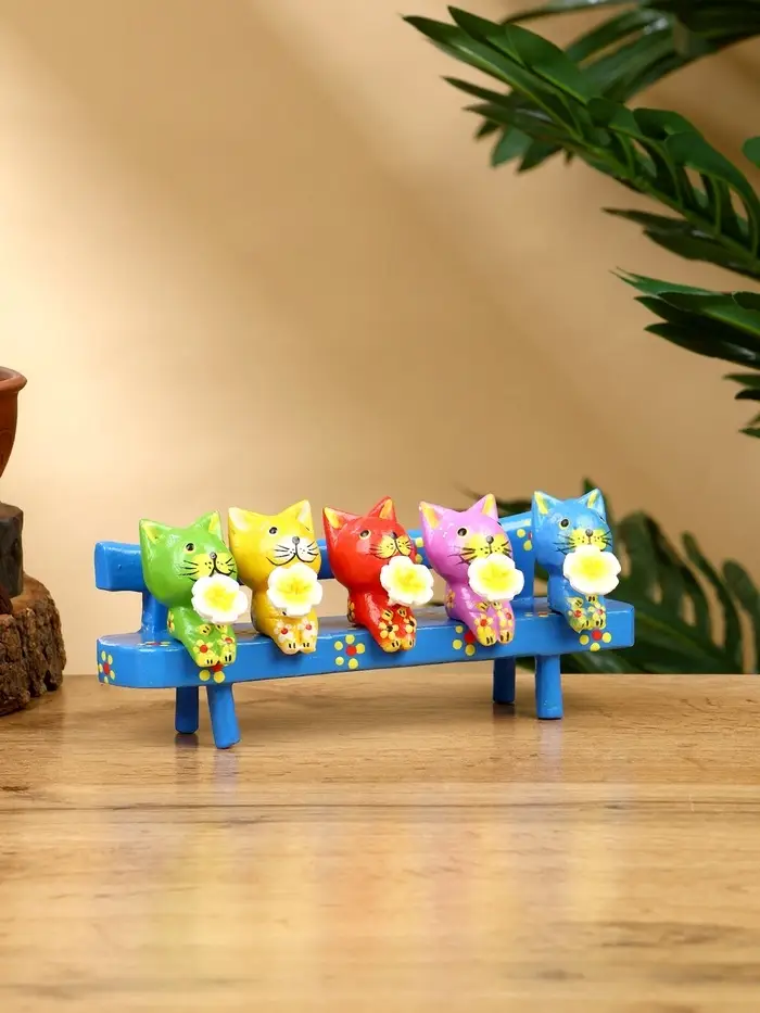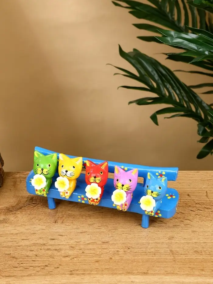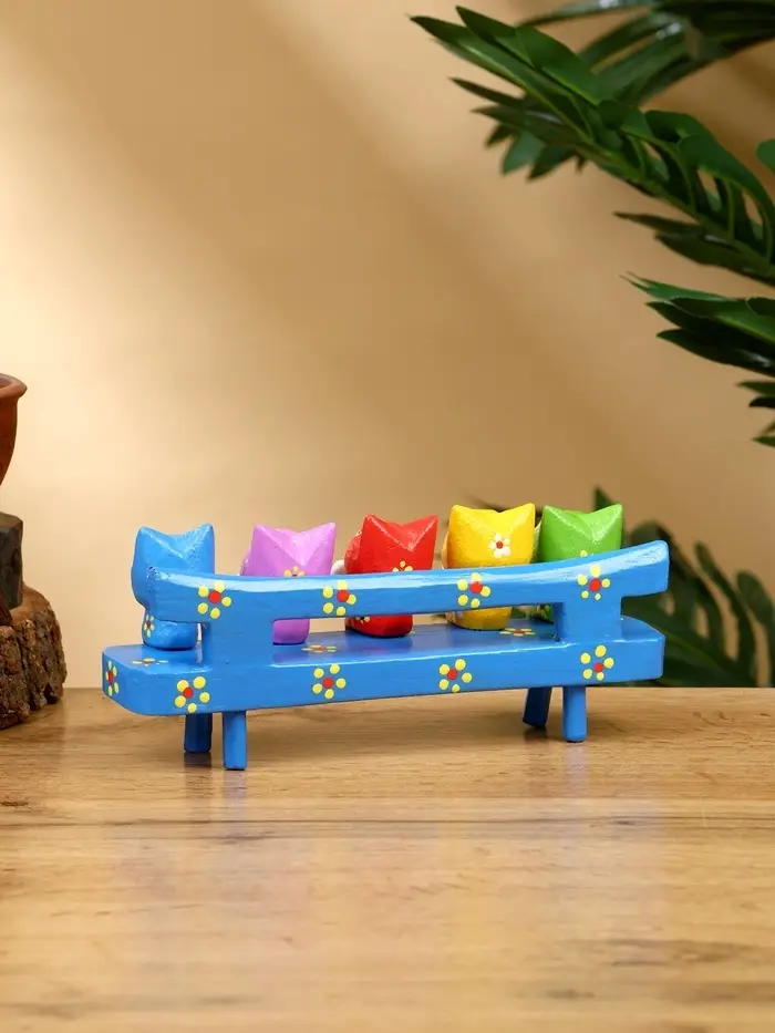 Сувенир "Котята на скамейке" дерево 19х8х6 см, цв. голубой