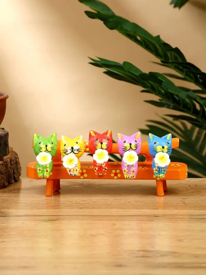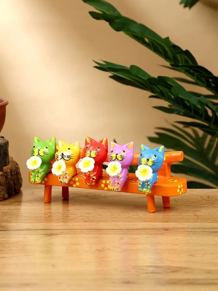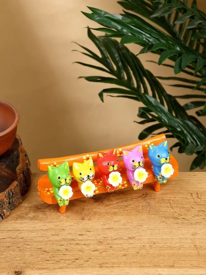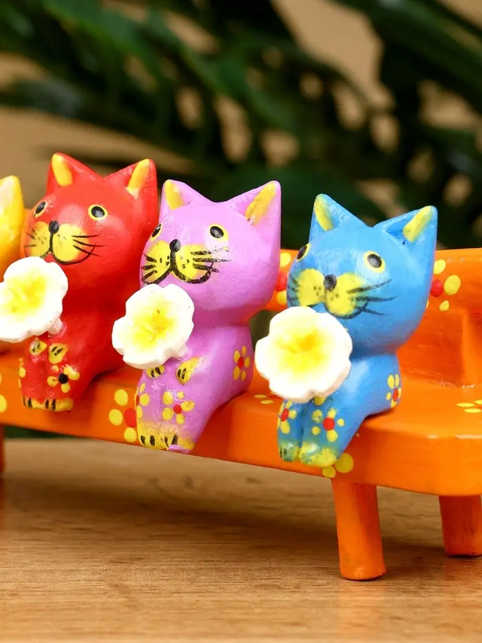 Сувенир "Котята на скамейке" дерево 19х8х6 см, цв. оранжевый