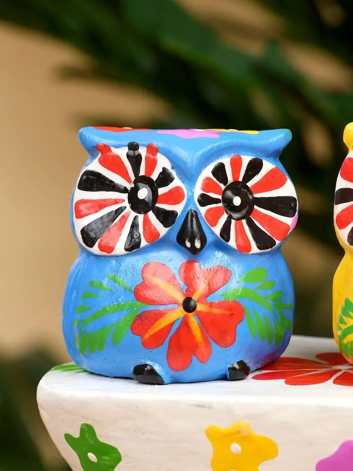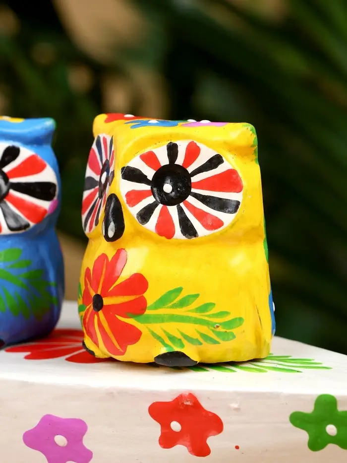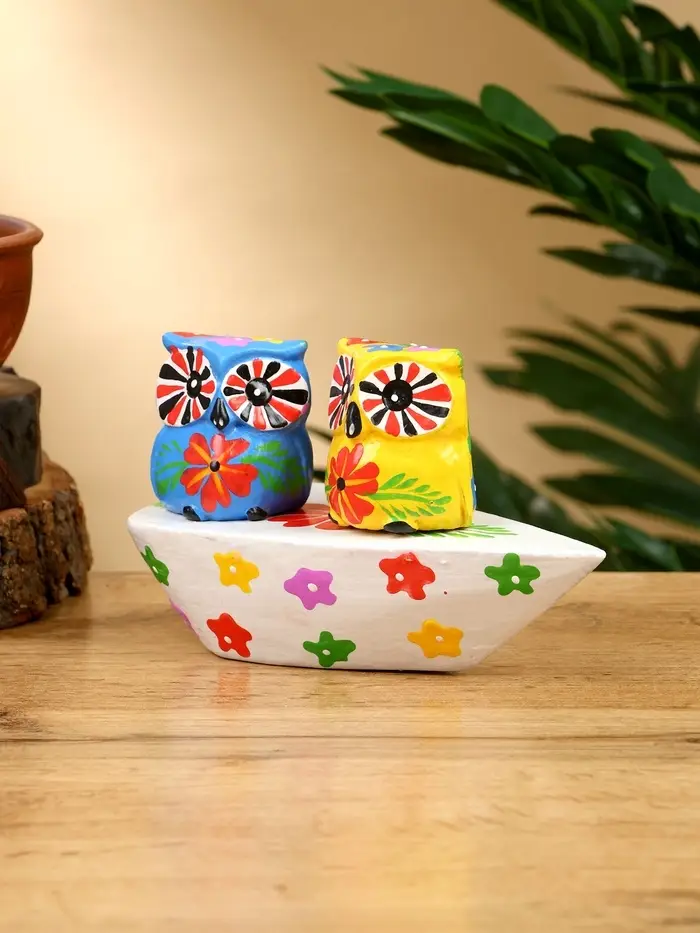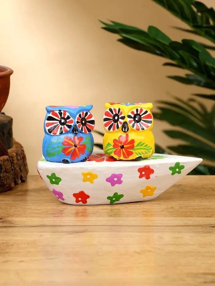 Сувенир "Пара совят" дерево 14х7х9 см, цв. жёлтый/синий