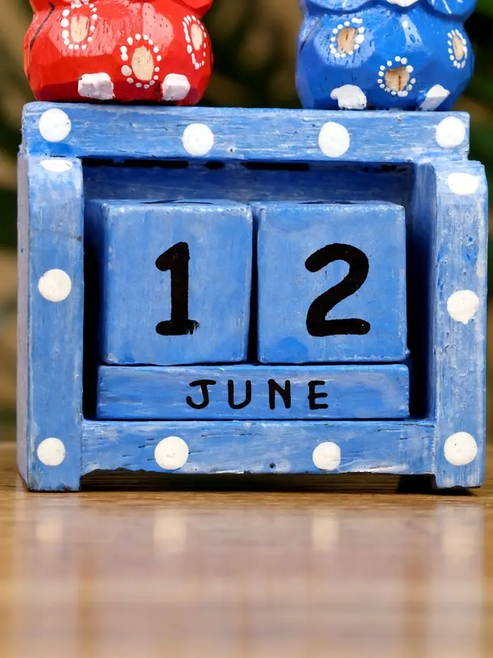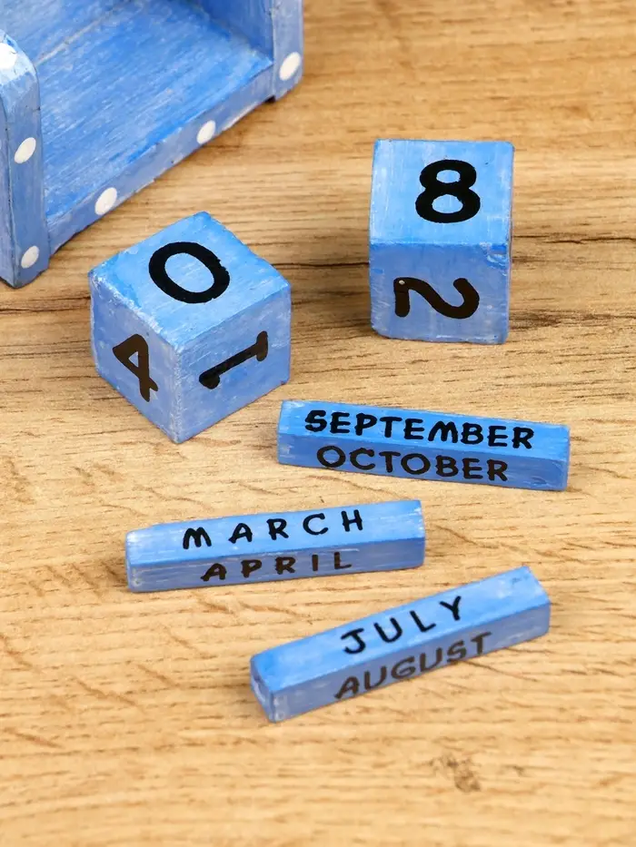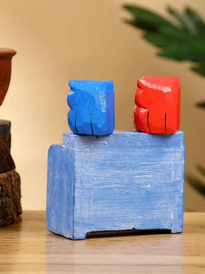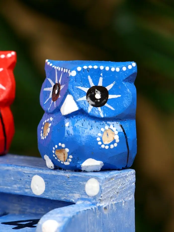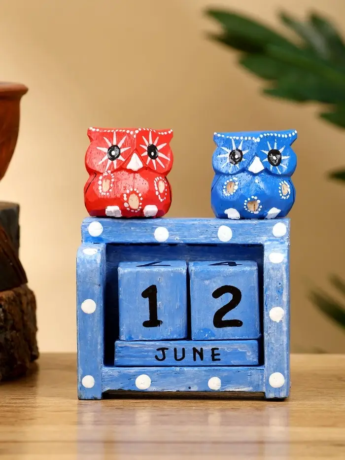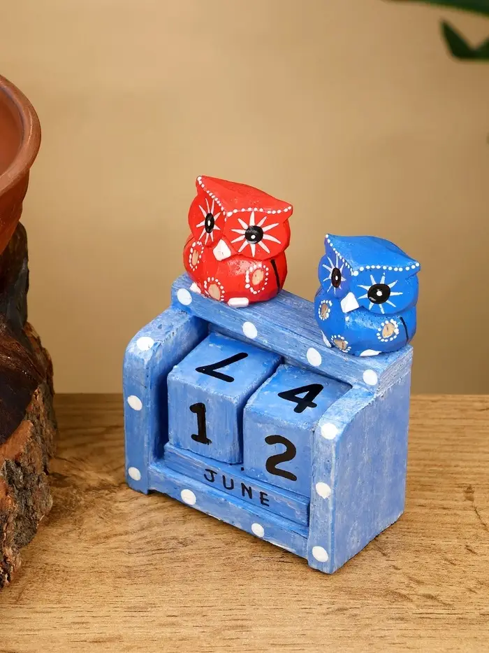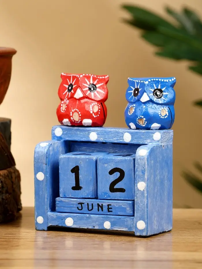 Календарь настольный «Пара совят», 8×4×9.5 см, дерево, синий, красный