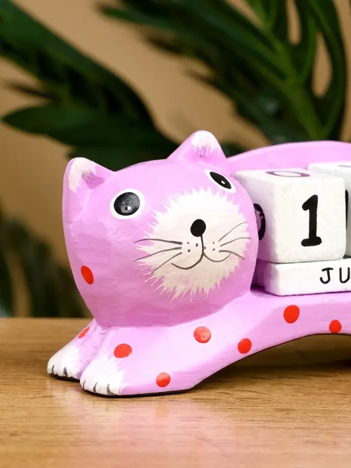 Календарь настольный «Кошка», 14×4×10 см, дерево, сиреневый