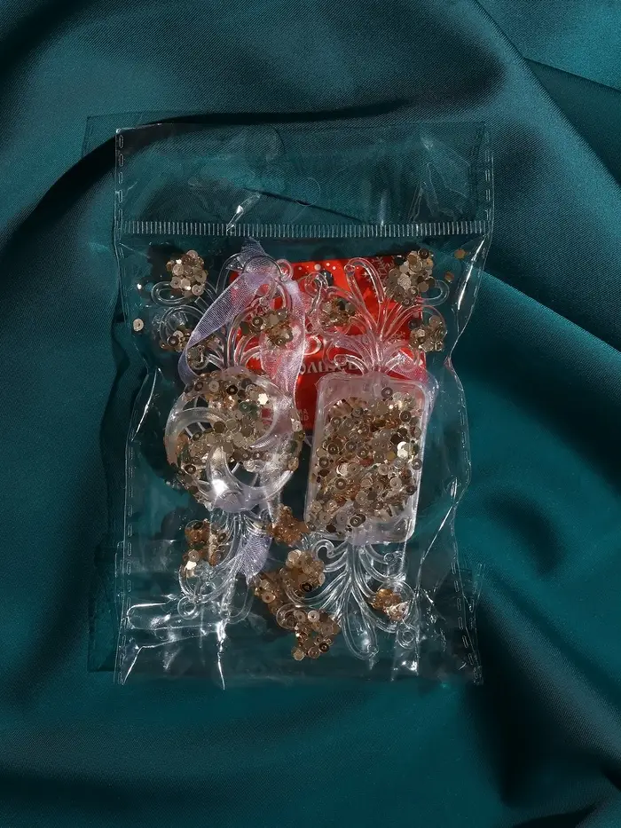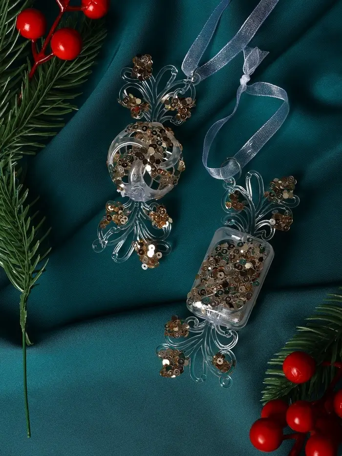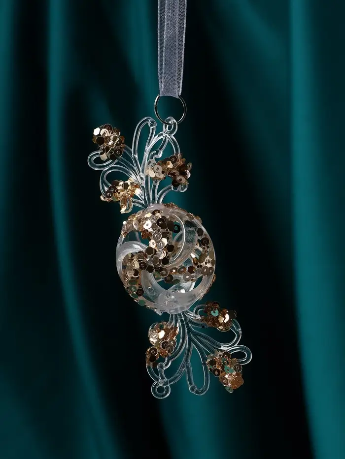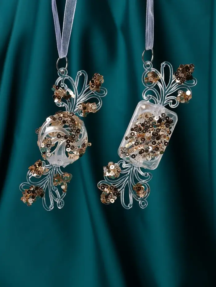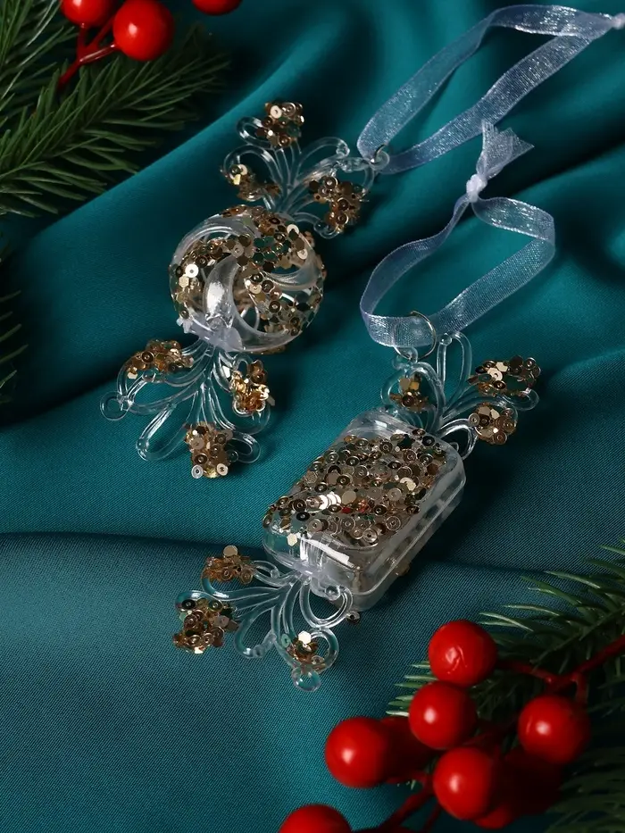 Украшение ёлочное "Праздник" (набор 2 шт) 10,5х4 см, прозрачно-золотой