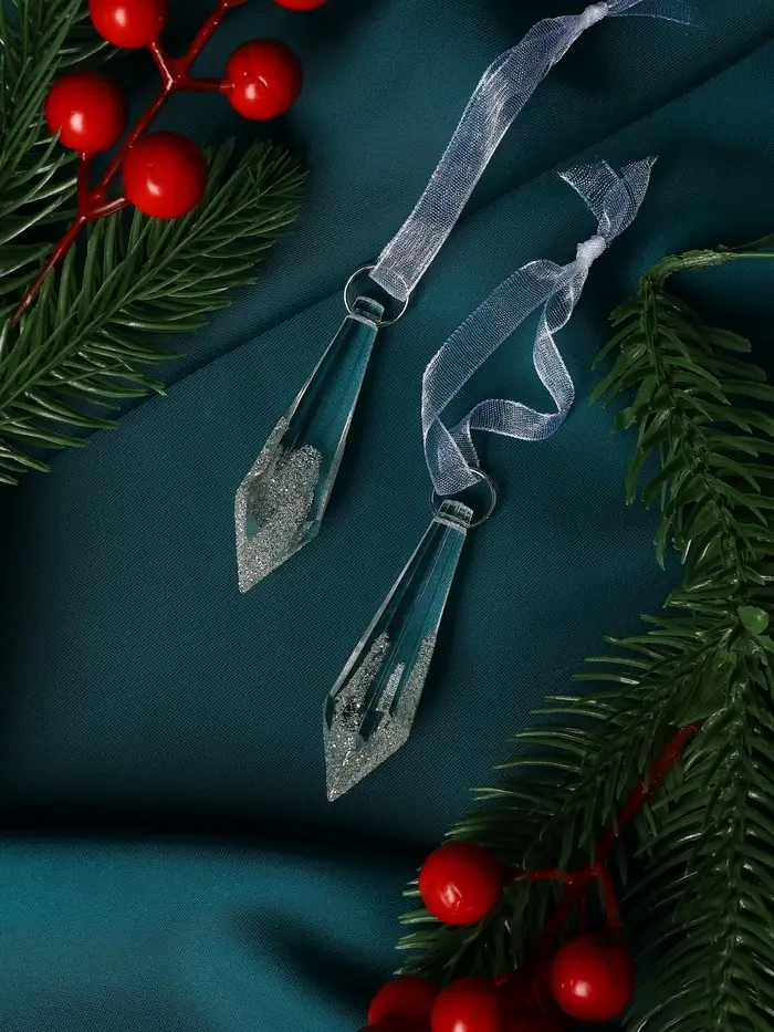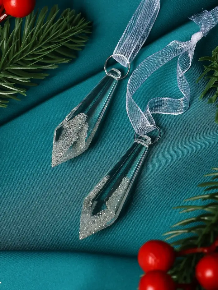 Украшение ёлочное "Льдинка" (набор 2 шт) сосулька грани, 6,5х1 см, прозрачный