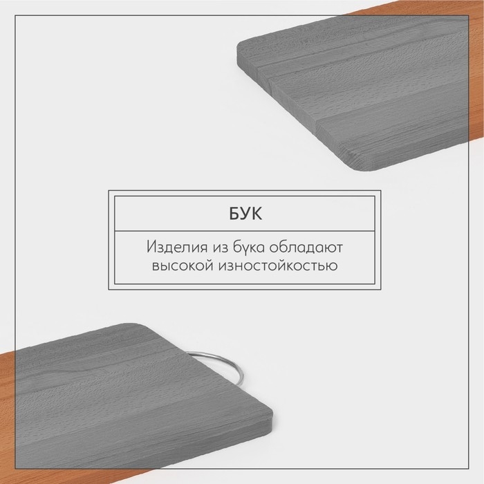 Доскa рaзделочнaя Adelica, с метaллической ручкой, 35×24×2 см, бук