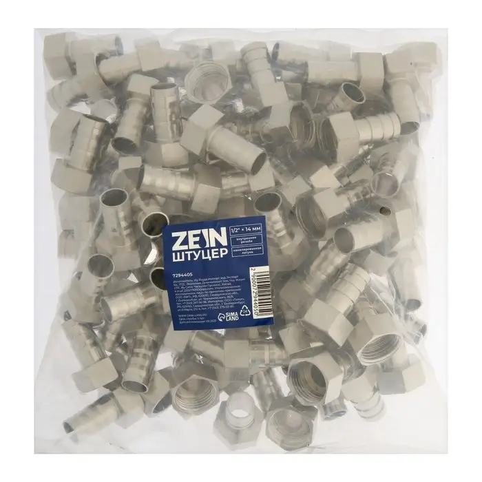 Штуцер ZEIN, 1/2" х 14 мм, внутренняя резьба, никелированная латунь, фасовка 100 шт.