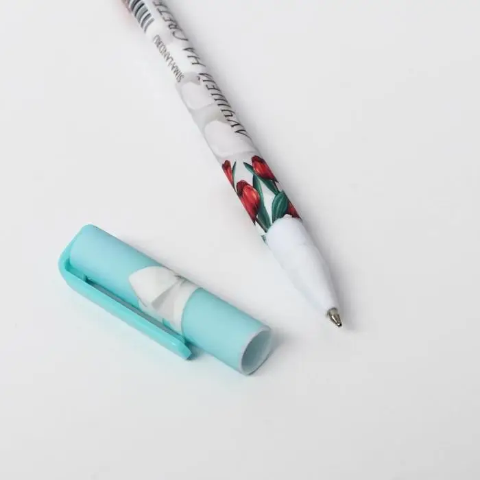 Ручка шариковая синяя паста, пластиковая с цветком "С 8 Марта"