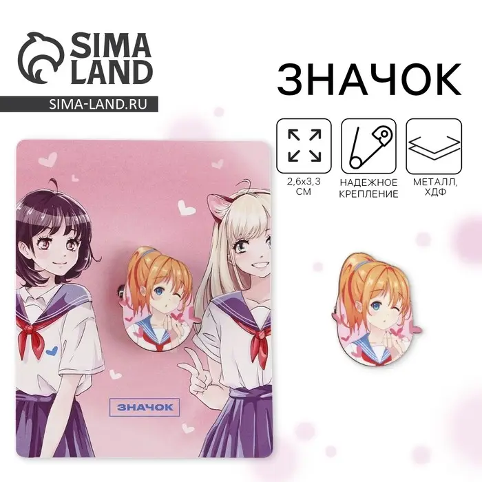 Значок деревянный «Школьницы», аниме, 2,6 х 3,3 см - яркий элемент, который порадует любого.