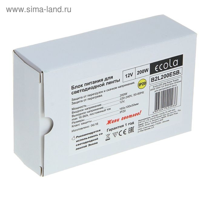 Блок питания Ecola для светодиодной ленты 12 В, 200 Вт, IP20