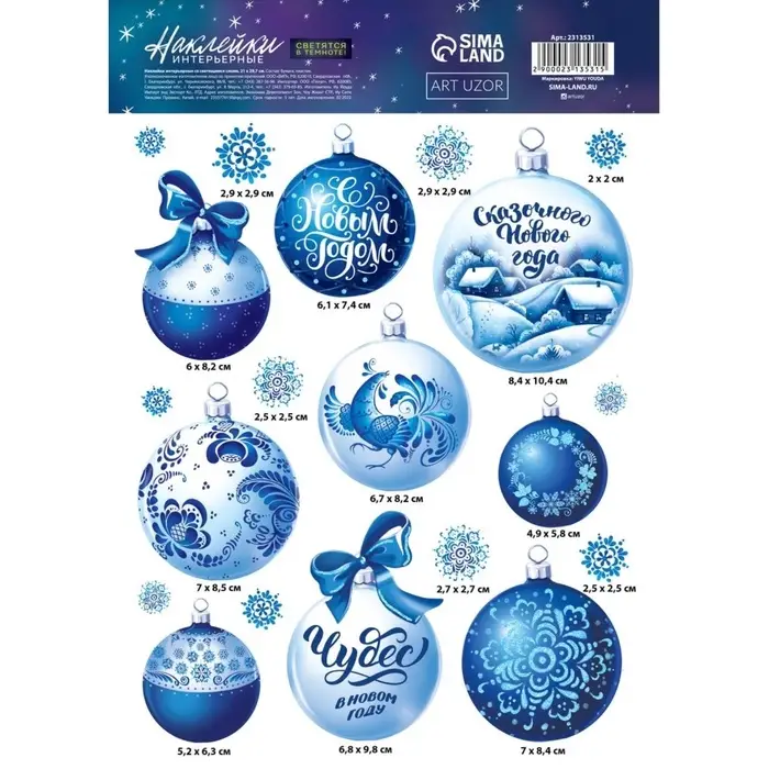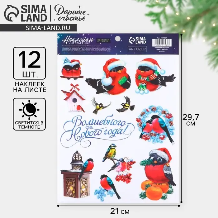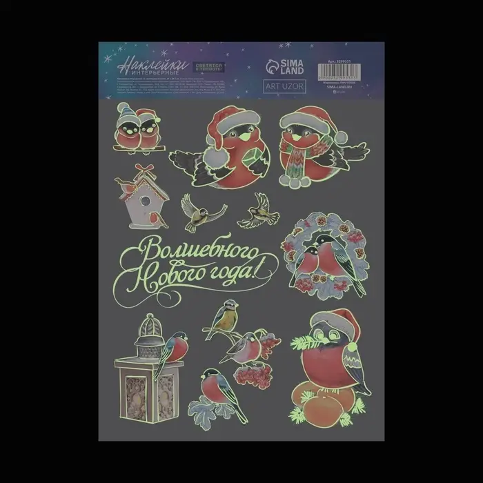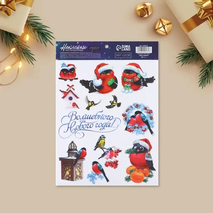 Наклейки новогодние, интерьерные со светящимся слоем «Волшебного Нового Года», 21 х 29,7 см