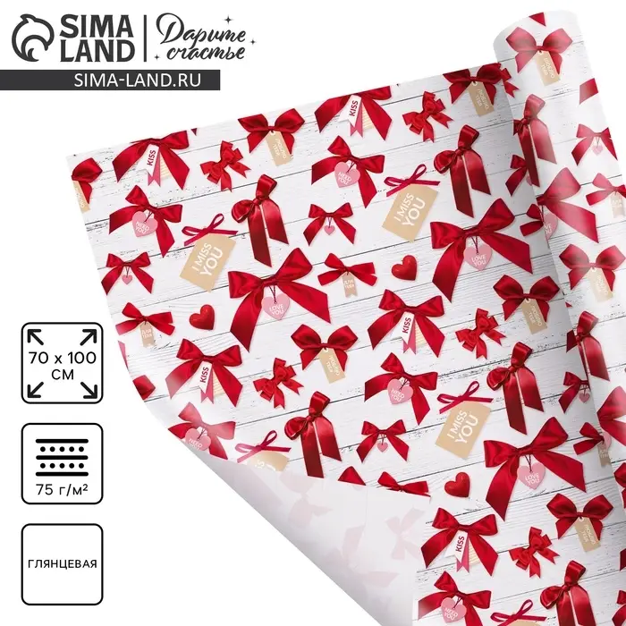 Бумага упаковочная глянцевая «I miss you», 70 х 100 см