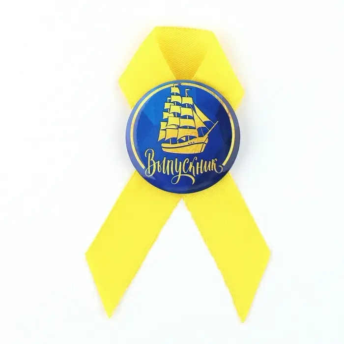 Значок с лентой на Выпускной «Выпускник», d = 4,5 см