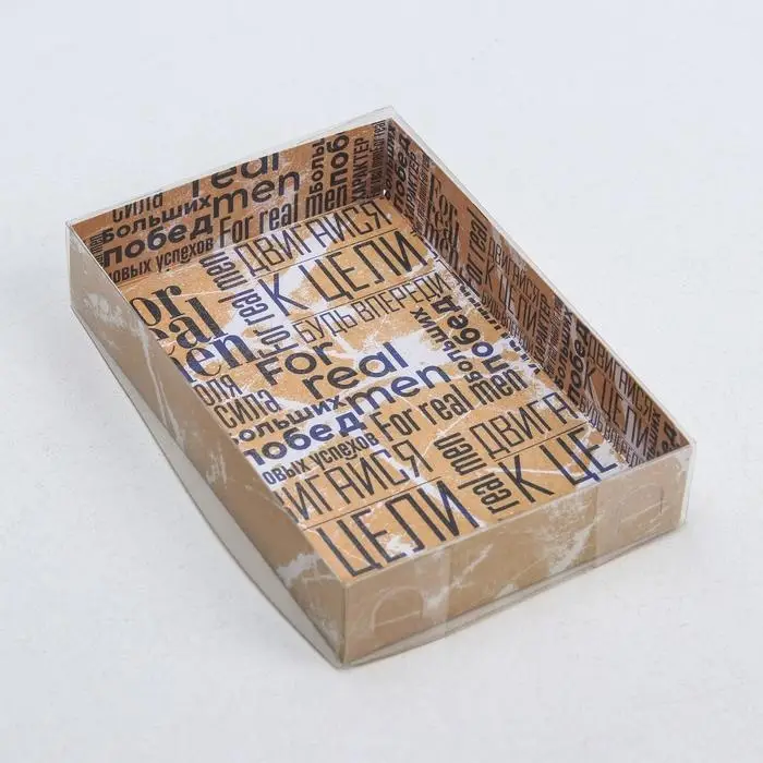 Кондитерская упаковка, коробка для макарун с PVC крышкой, For real man, 18 х 12 х 3.5 см