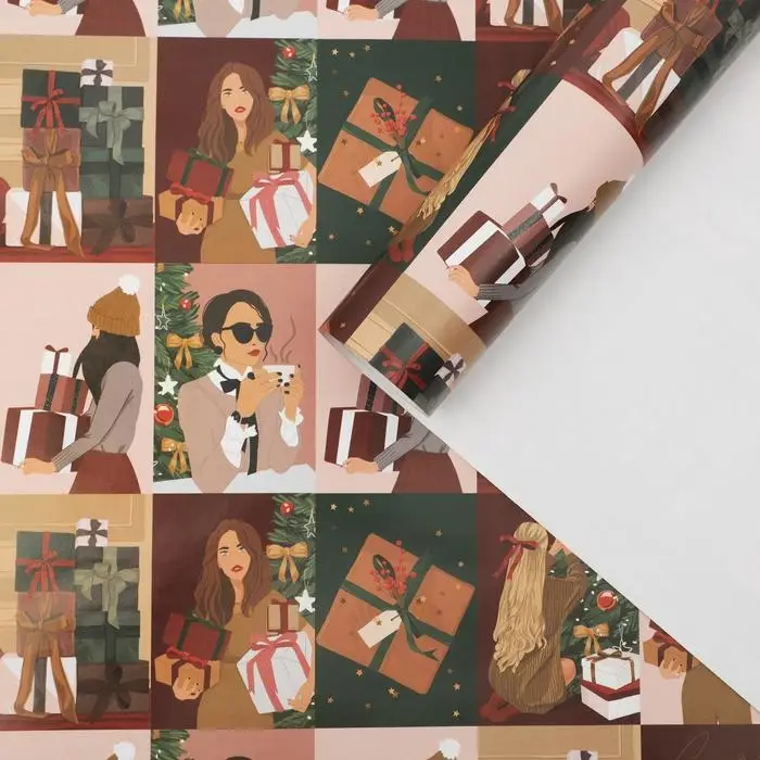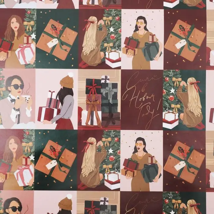 Упаковочная бумага на новый год «Стильные девчули», 70 х 100 см, глянцевая