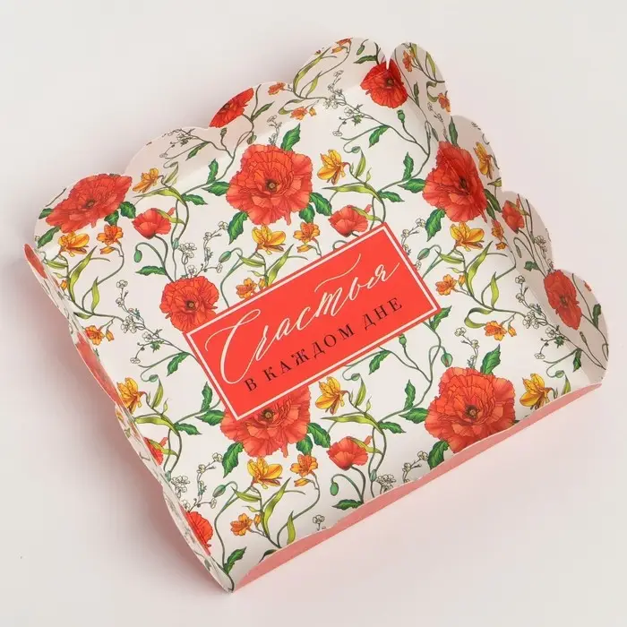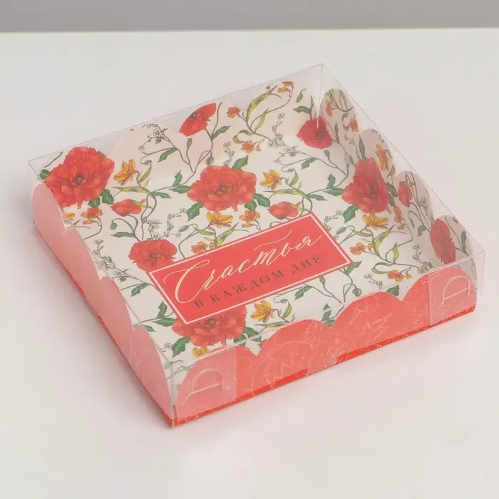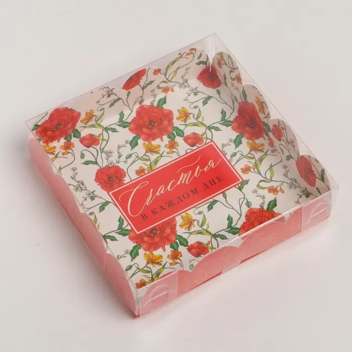Коробка для печенья, кондитерская упаковка с PVC крышкой, «Счастья в каждом дне», 13 х 13 х 3 см