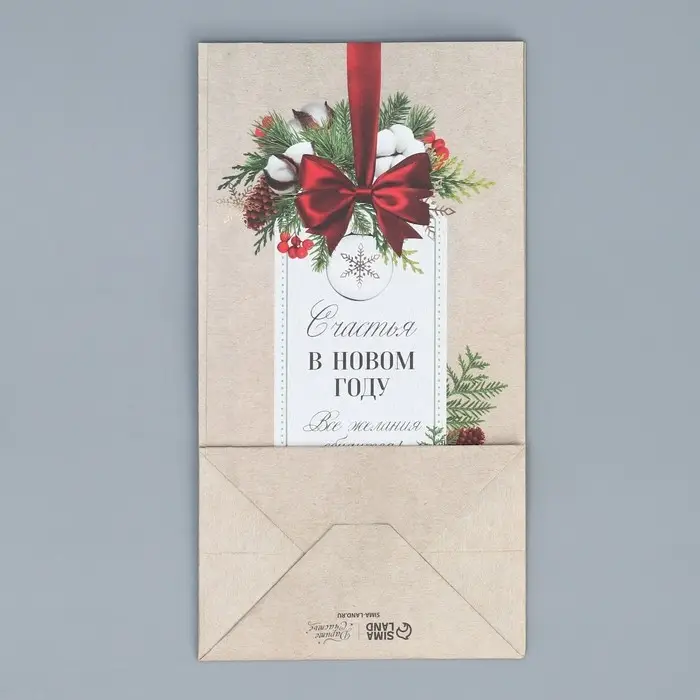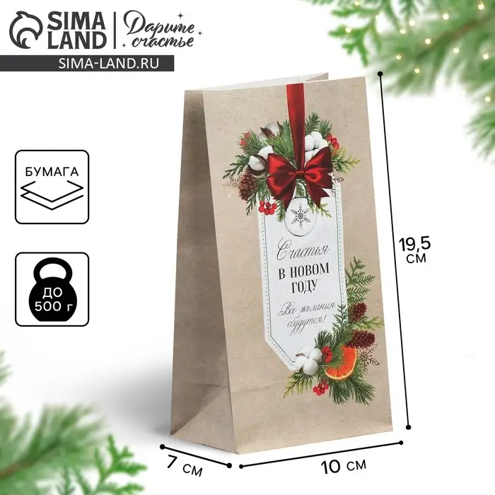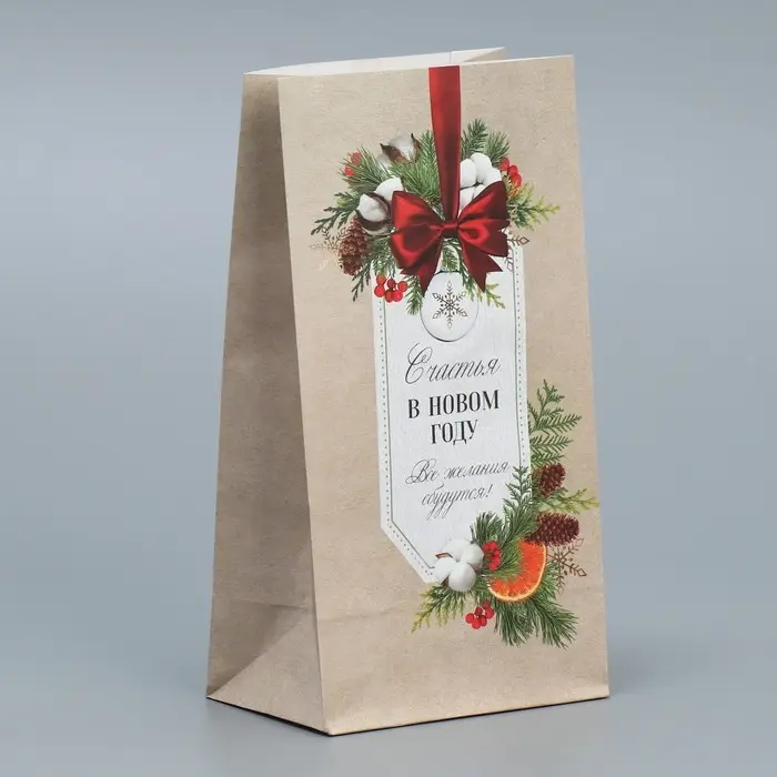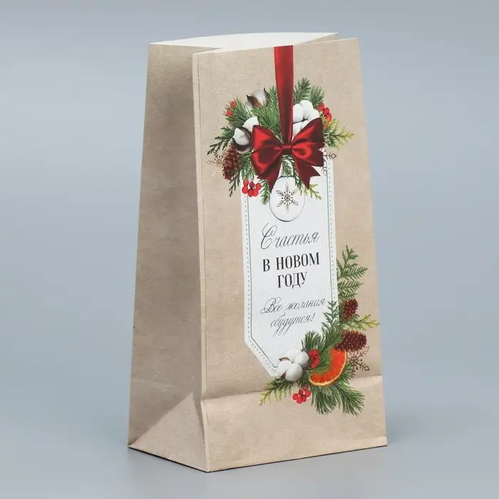 Пакет подарочный без ручек «Все желания сбудутся», 10×19.5×7 см, Новый год