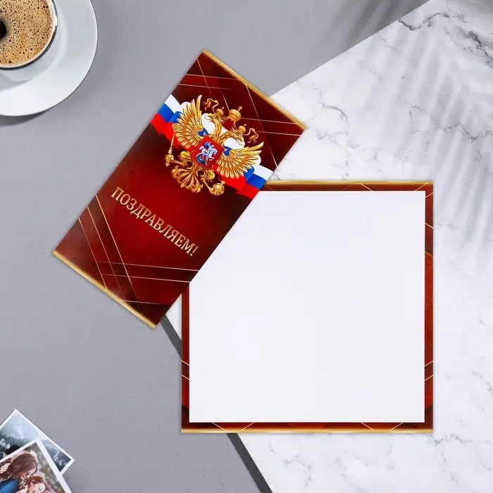 Открытка-евро "Поздравляем!" герб, красный цвет, 21,5х21,5 см