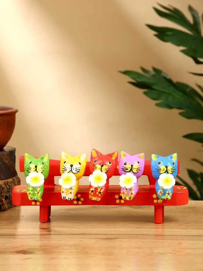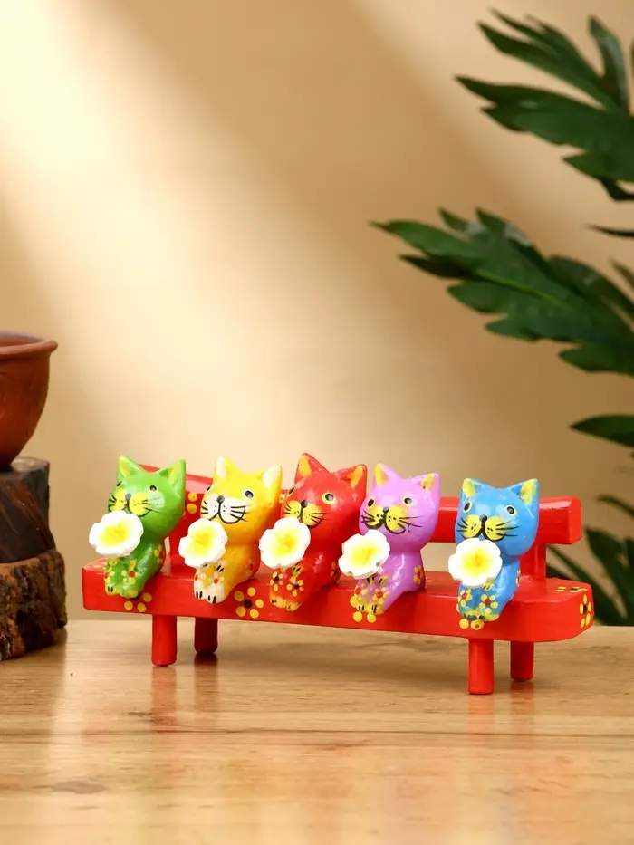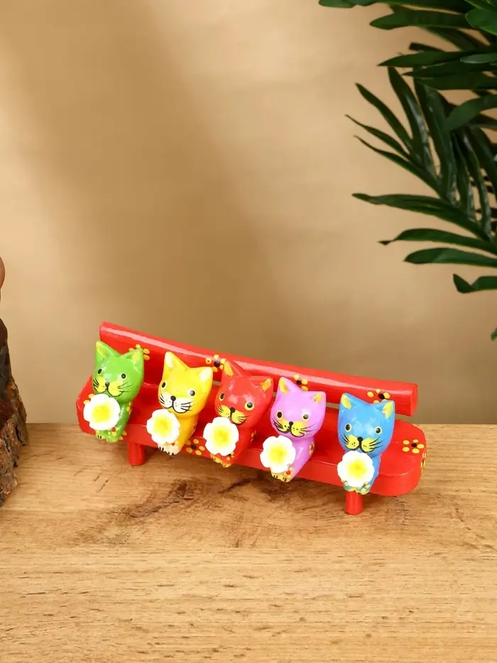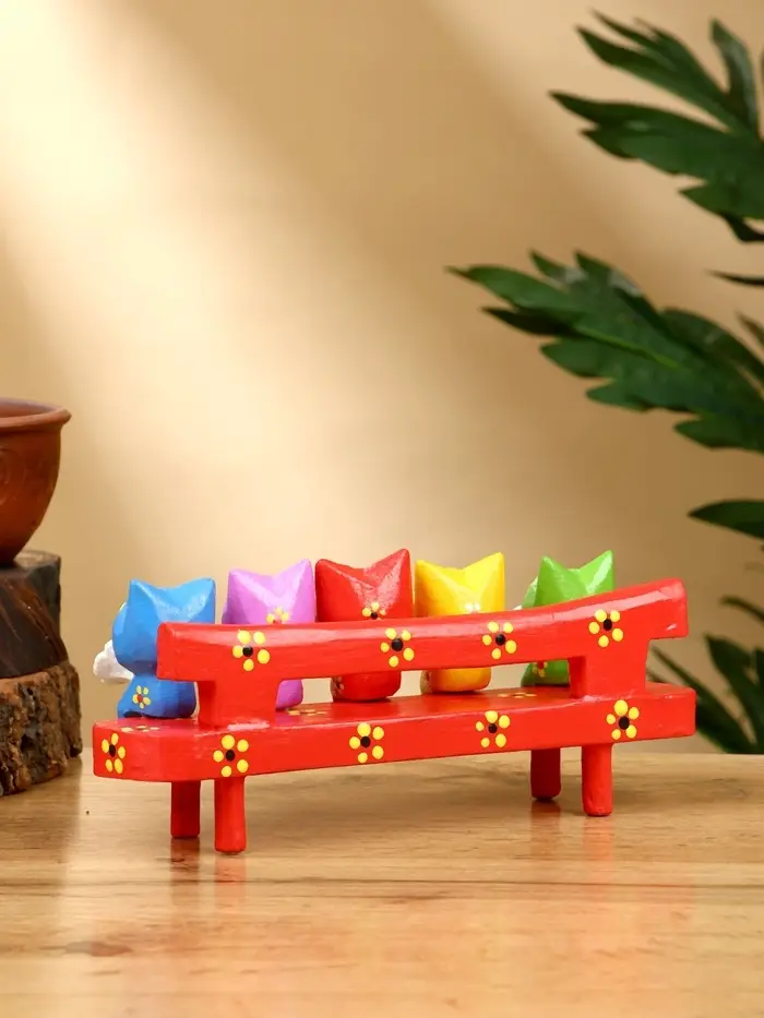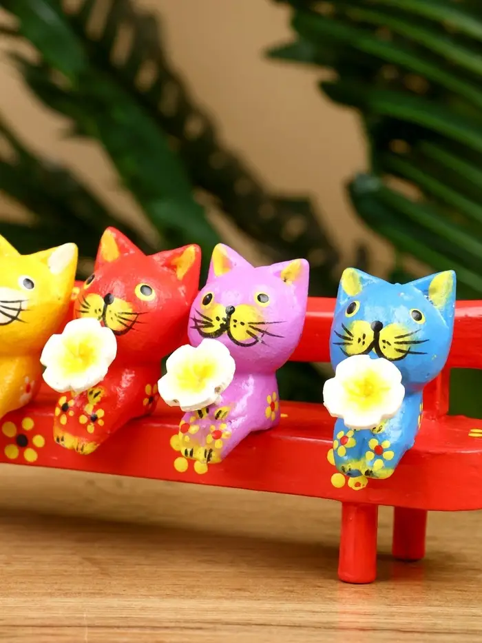 Сувенир "Котята на скамейке" дерево 19х8х6 см, цв. красный
