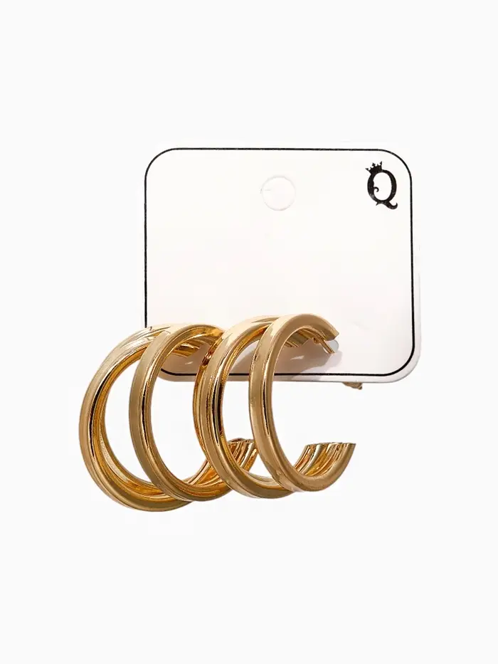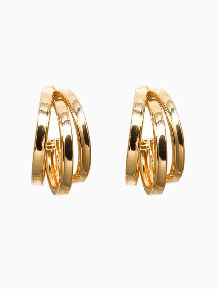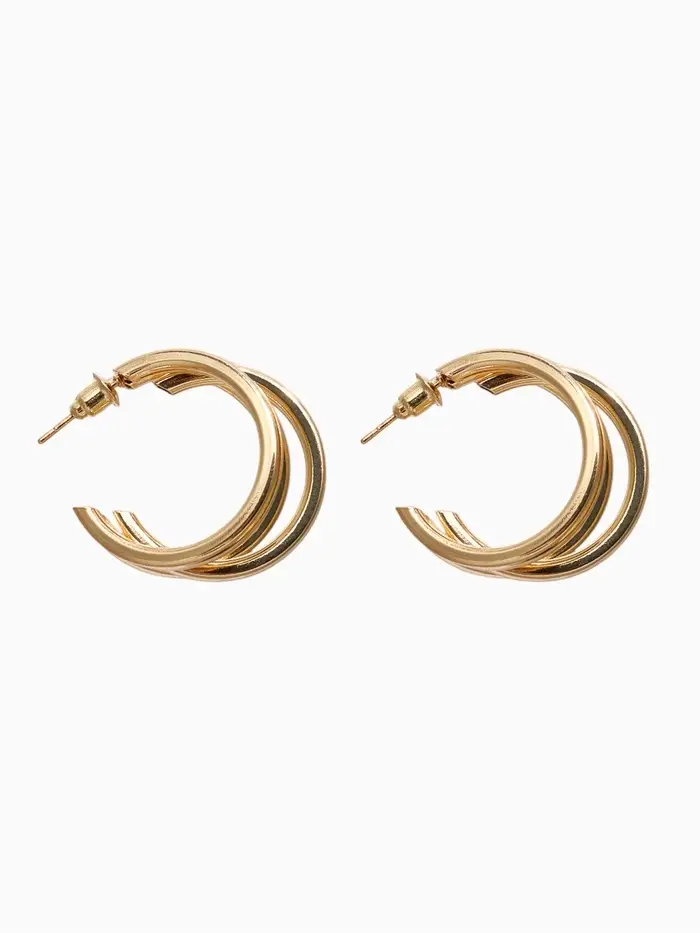 Серьги металл "Тринити" широкие, тренд, цвет золото