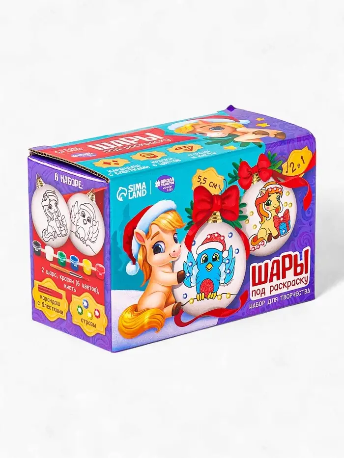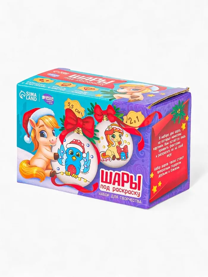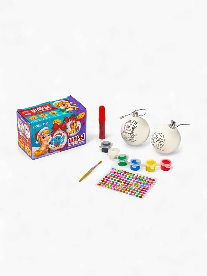 Набор для творчества «Елочные шары под раскраску »Волшебные истории« + краски, 2 шт.