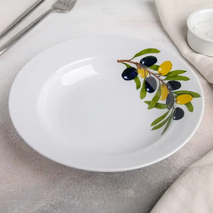 Тарелка глубокая Дулевский фарфор «Оливки», 225 мл, d=20 см, белая, рисунок МИКС