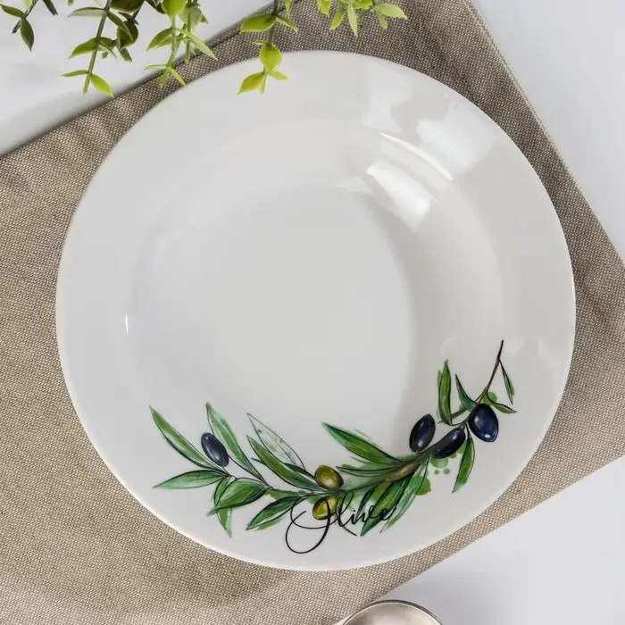 Фарфоровая глубокая тарелка "Оливки" — это не просто посуда, а настоящее украшение вашего стола. Почувствуйте удовольствие от каждой трапезы! Прочность материала позволяет использовать тарелку в микроволновой печи и посудомоечной машине, что значительно упрощает уход за ней.
