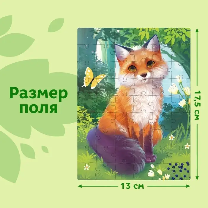 Ребёнок соберёт все 54 детали в одно целое, и получит красочную картинку размером 17,5 × 13 см.