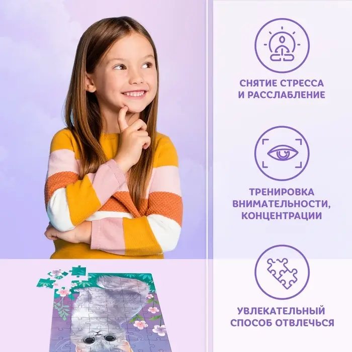 Пазл «Милый котик» — это занимательная развивающая игра, которая стимулирует познавательную активность и помогает упорядочить мысли.