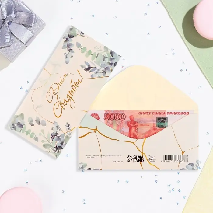 Конверт для денег «С Днём Свадьбы!», 16×8 см
