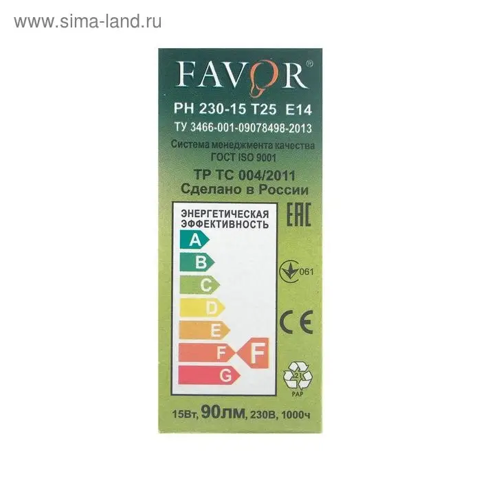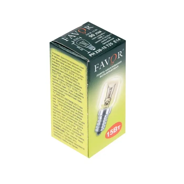 Лампа накаливания Favor, Е14, 15 Вт, 230 В, для холодильников и швейных машин