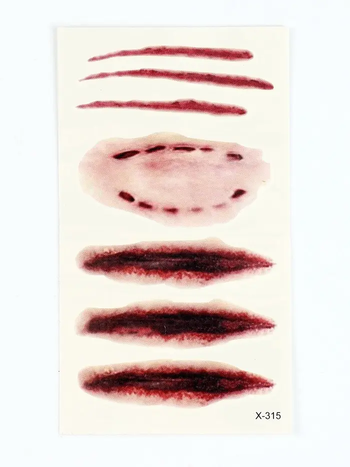 - Включает разнообразные элементы: имитации насекомых, ран, шрамов и частей тела.