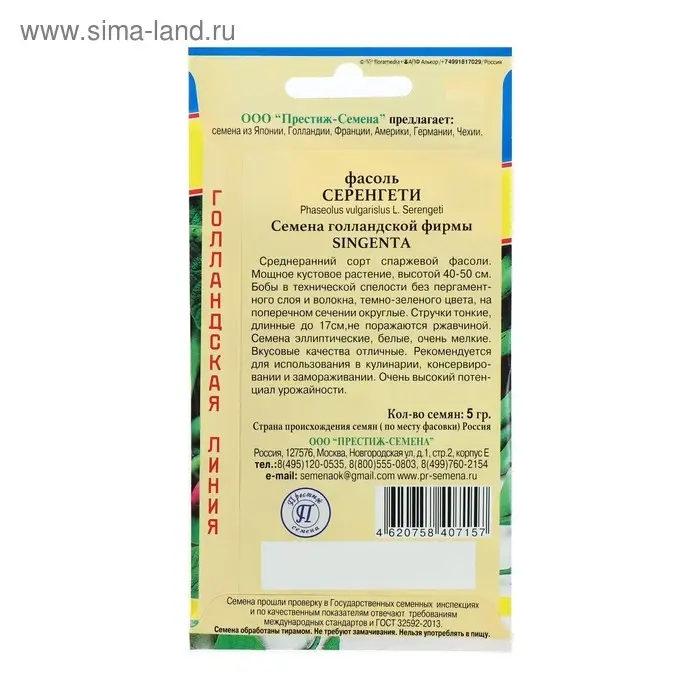 Семена Фасоль спаржевая "Сакса без волокна 615", 3 г