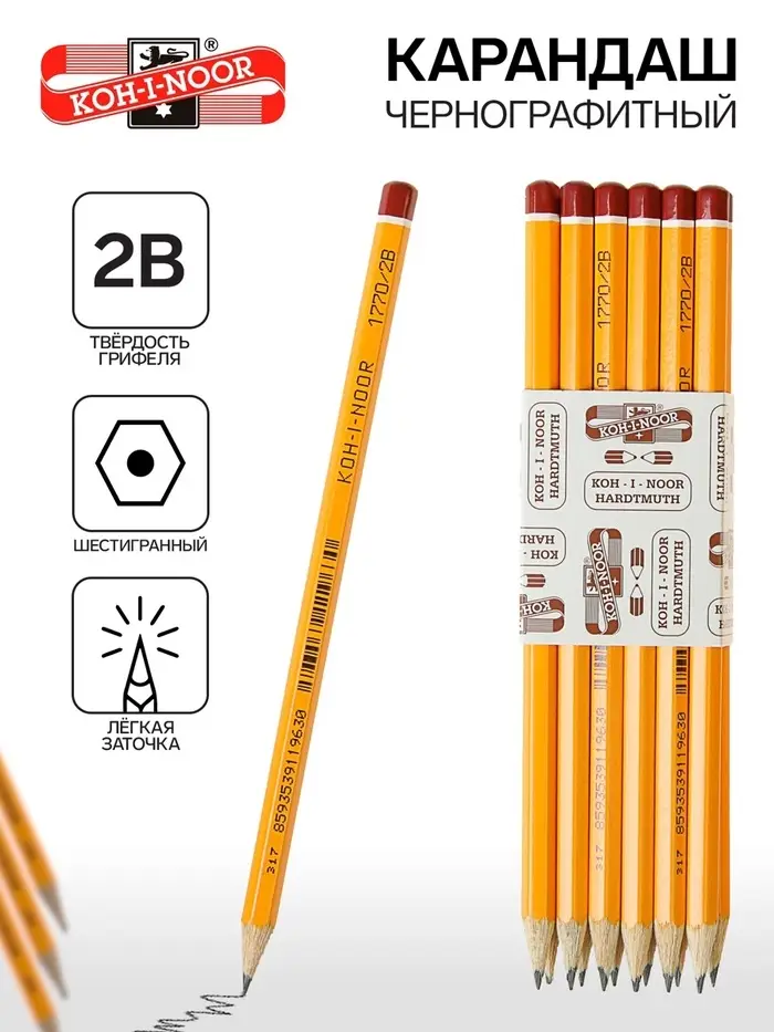 Карандаш чёрнографитный 2B граненый – прекрасное сочетание выгодной цены и высочайшего качества. Прочный графитовый стержень не ломается и не крошится, а деревянный корпус легко затачивается.