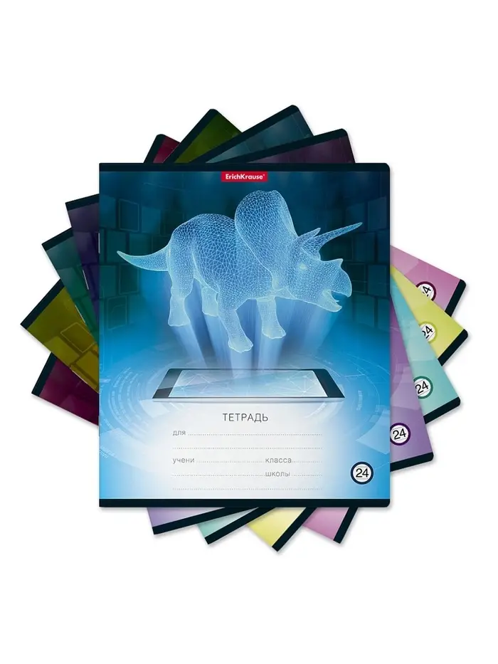 Тетрадь 24 листа в линейку ErichKrause Digital Dino, обложка мелованный картон, с принтом